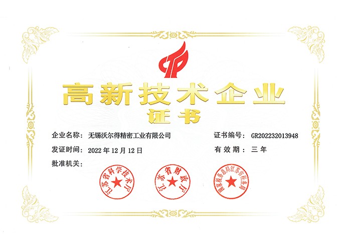 - 喜訊 | 熱烈祝賀無錫沃爾得精密工業有限公司通過2025年省級“專精特新”審核,持續深耕創新之路!